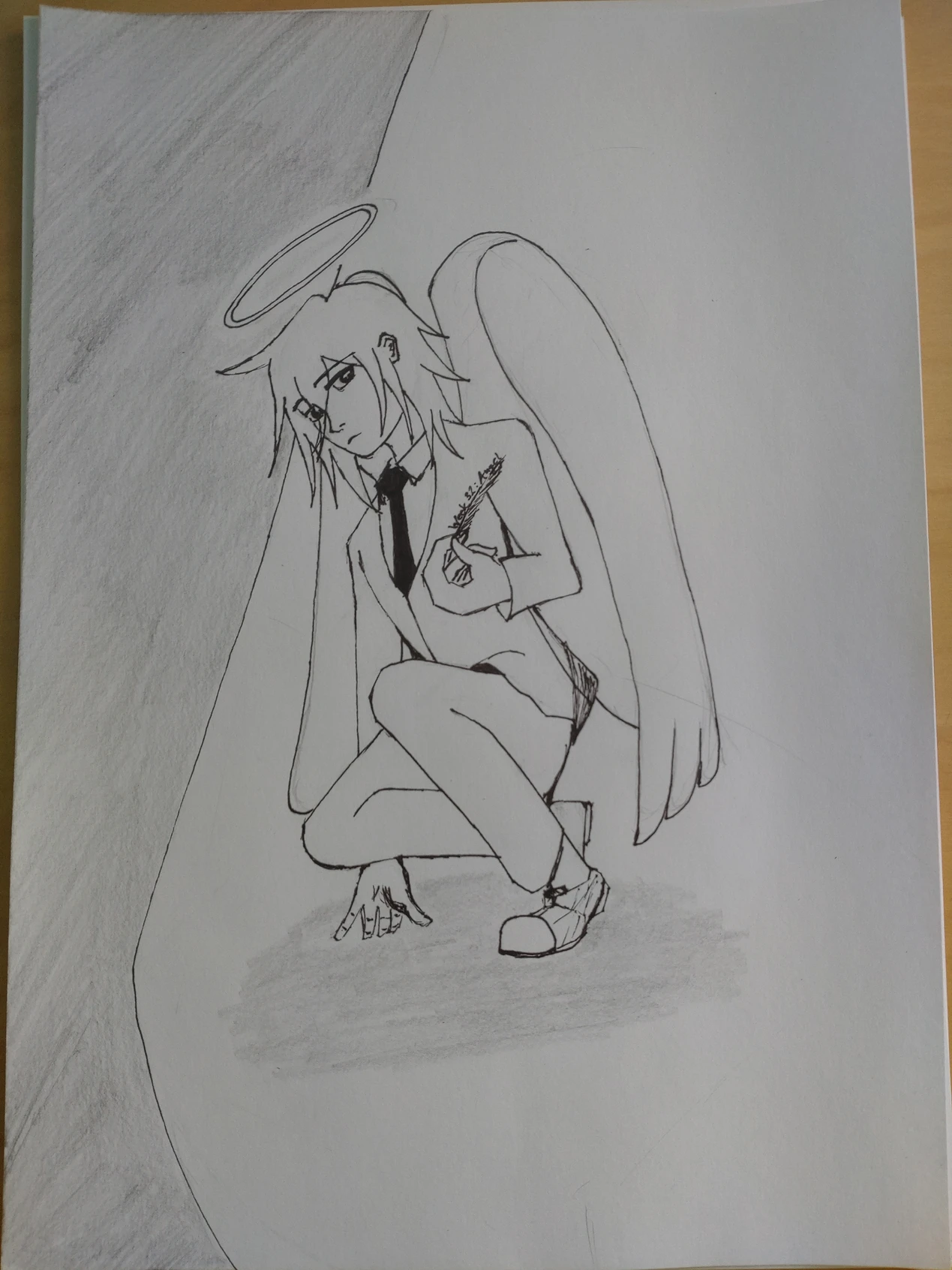 This seems like another fan-art prompt, mainly because I don't have any strong faith-based associations with the concept. It's a fine enough idea, I suppose, but I thought that angels are also very under-represented in the media I engage in. Angels in America comes to mine, but terrifying Meryl Streep seems like a difficult thing do put on paper, so I cycled through whatever tangentially related stuff I could find. I could have gone with the Arknights' Sankta, but their designs don't speak to me very much, unfortunately, and I don't really understand the Blue Archive lore to qualify turning to that franchise. I've read a few manga featuring angels, but most of them were kinda bad... So I've cheated and turned to a good manga that will probably get a good anime adaptation in the near future: Chainsaw Man.
