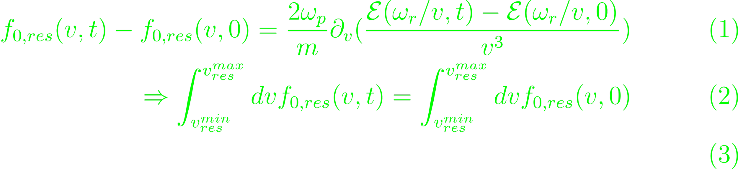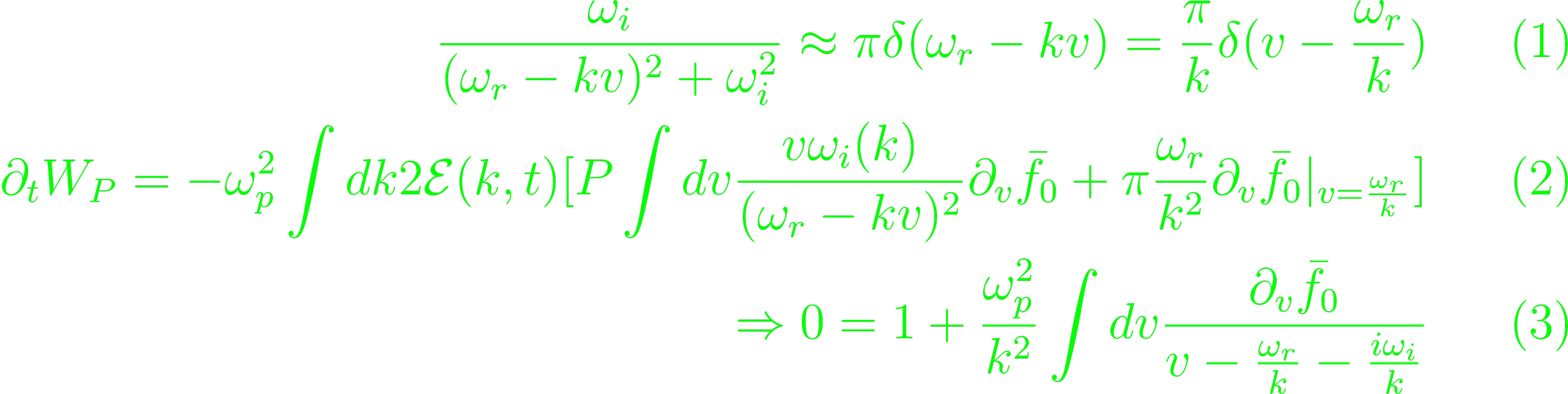 Further expansion yields an imaginary component which must vanish. The time-derivative of the particle energy can be split into a resonant and non-resonant component. This sum expresses in a 2ωi term of the non-resonant contribution and a 4ωi term of the resonant contribution. The resonant kinetic energy is equal to the non-resonant kinetic energy, and the energy in the electric field, so the latter two, which make up the wave energy, are equal.